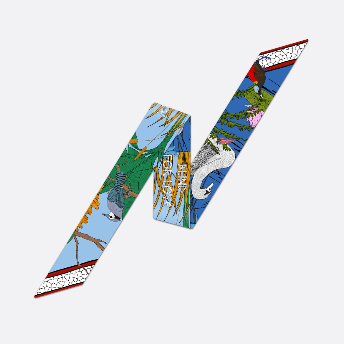 The main image is a pair of white swans with their heads together, symbolizing an eternal love. This is also considered a symbol of a new beginning, a promise to bring a brighter and better future. And we can see the contrast in the scarf when the image of a green snake lurking appears, but the two swans still keep their heads together and are inseparable. This is also the profound meaning of life's dilemma when around us, difficulties always exist. But even in the worst situations, with love, adversity turns into peace...