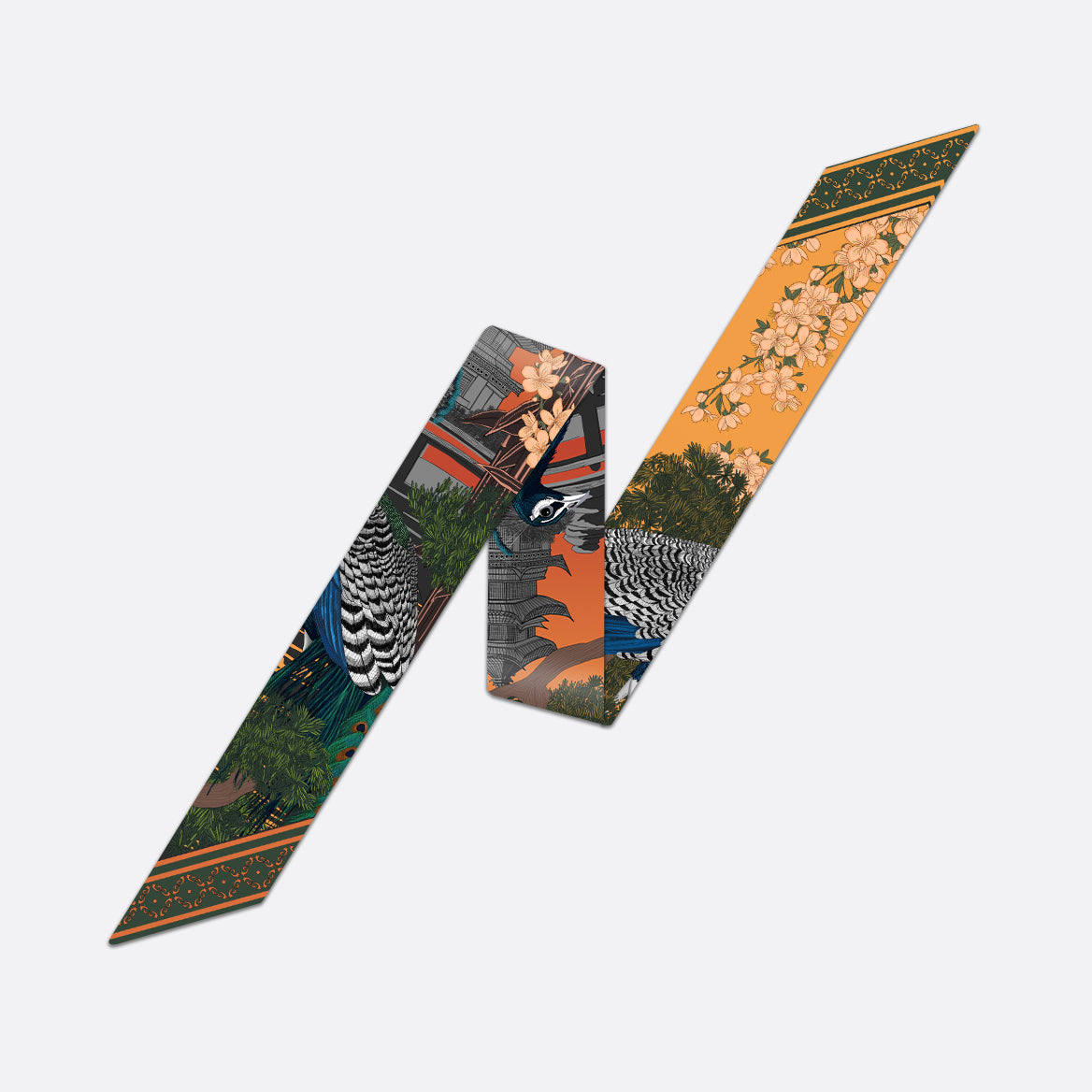 The scarf has a bold Asian style, with the image of a pair of peacocks symbolizing fullness, completeness and perfection. Every detail is hand-drawn on computer, carefully trimmed. The most impressive highlight of the scarf is the brilliant, shiny peacock feathers. Each line of feathers has been invested in time to research to create a reflective effect. Every time the sun shines on it, it becomes even more sparkling and outstanding.